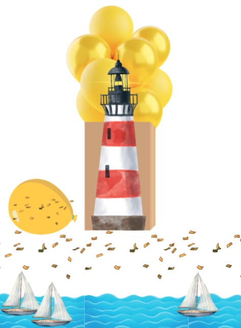 For this activity we made a carboard box into a lighthouse. Inside the lighthouse were yellow balloons. The kids had to take the lighthouse lights (balloons) and create static electricity by rubbing the balloons on their head.